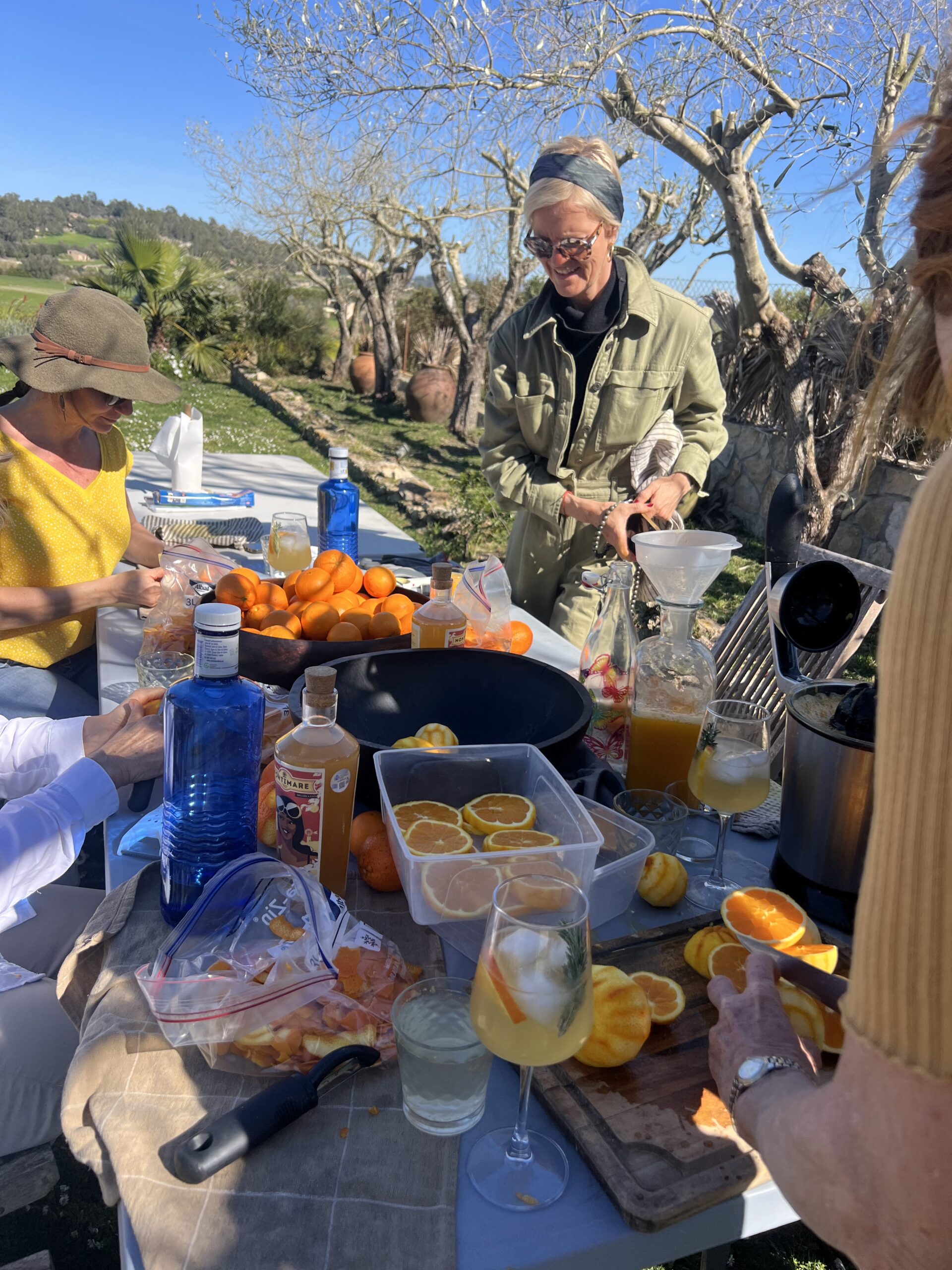 Back at the long wooden table, baskets brimming with our freshly picked oranges, we began preparing the oranges for the next batch of Montimare - a unique blend of individual macerations and distillations of ecological citrus, Mediterranean herbs, Mallorcan almonds and quinine.